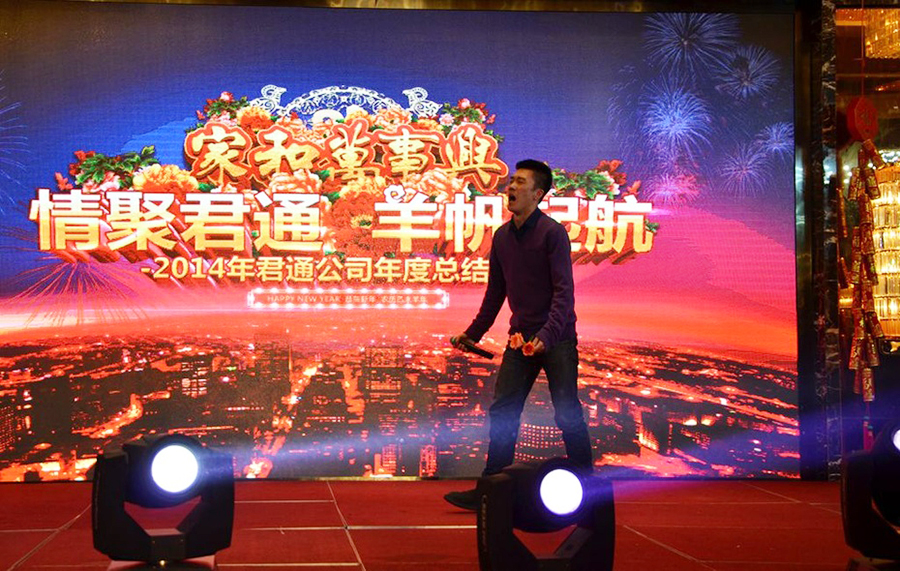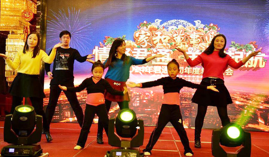 | 2015年2月11日,民间俗称的小年,好日子。 立春后的江南阳光灿烂,温暖如春。 太湖畔的同庆楼百合厅流光溢彩,喜气洋洋。身着节日盛装的青春少女鱼贯而入,留下银玲般的笑声,走过她们身边,仿佛被青春撞了一下腰。 君通春晚在欢快的乐曲声中,在员工的欢呼声中拉开了帷幕。 君通总经理尹可珍女士发表了热情洋溢的新年贺词。2000年10月尹可珍女士创立君通公司,几度风雨几度春秋,君通经过十四年发展成为本地IT行业中实力强的企业。熟识我的博友可能都知道,可珍晚常提到的君子兰,我好的女朋友。很开心参加这个欢乐的盛会,虽没有明星大腕,没有星光灿烂,却是每个君通人的倾情演绎,真情流露,好。 ![]() 君通的春晚现场仿佛是一个欢乐的大家庭,演出以部门家庭为单位,更有许多员工可爱的孩子也表演了许多节目。 市场部的美女妈妈带着双胞胎女儿跳起了欢快的《小苹果》