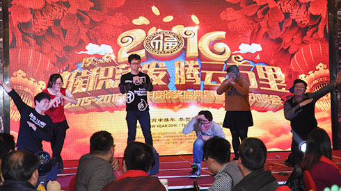 接下来我们技术部门的帅哥美女们闪亮登场,带来小品<我的路>顾健美给我印象深刻,一改往日形象,妖娆的甩头舞,可是用尽浑身力气,获得阵阵掌声,赢得我们君通春晚的佳女演员的称号。