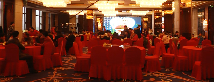 上午8点半左右,君通人怀着喜悦的心情一起来到酒店,行政部布置好现场,按照以部门为单位,坐着等待年会的开始。