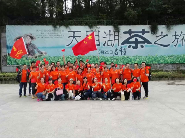 午餐之后,稍作休息,大家便继续保持着高昂的热情开始了下午的行程,下午大家兵分两路,一部分人跟随着导游游览湖里山,领略状元文化和慈文化,剩下的一部分人游览畅玩天目湖水世界。