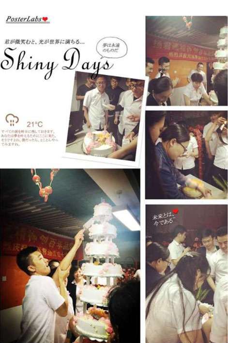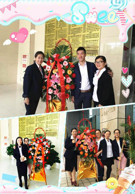 说出对尹总、对公司的各种感激的情愫和送出对公司的祝福后,伙伴们期待的大蛋糕的心都快融化了,不过别急,在品尝我们17岁的大蛋糕前,尹总突然邀请软件部的茹宁上台,原来也是软件部茹宁的生日,贴心的尹总特意为她献上了鲜花和蛋糕: