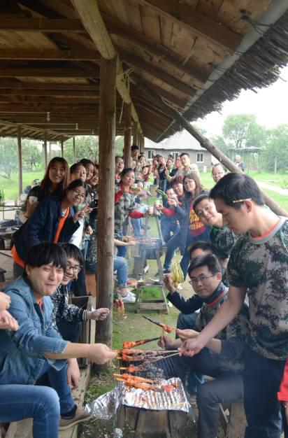 游戏过后,肚子咕咕叫了,激动的烧烤开始哩。比较幸运,我和冬梅姐、大老王等在一组,看我们的体形知道我们可是吃货啊,大老王带来了诱人口水的猪蹄,每人先来一块再说,耶,老叶怎么不吃?原来他是在帮我们烧烤呢,别急,老叶,我来 “喂”你,哈哈!你还别说,老叶的烧烤技术可是的,你看他翻烤的熟练程序、撒佐料的麻利劲儿知道了,老叶当之无愧的获得了君通“烧烤”。当然,老叶烧烤背后也有我和冬梅姐的支持,我们穿串,递材料,喂食可是忙得不亦乐乎的。这又让我想到了每个月我们前几名站在领奖台前光鲜的现象,我们是风光了,但我们要感谢的是尹总对我们的信任,公司对我们的大力支持,技术部、软件部、客服部、管理部等各个部门同事的相互配合才有我们的成绩,感谢!