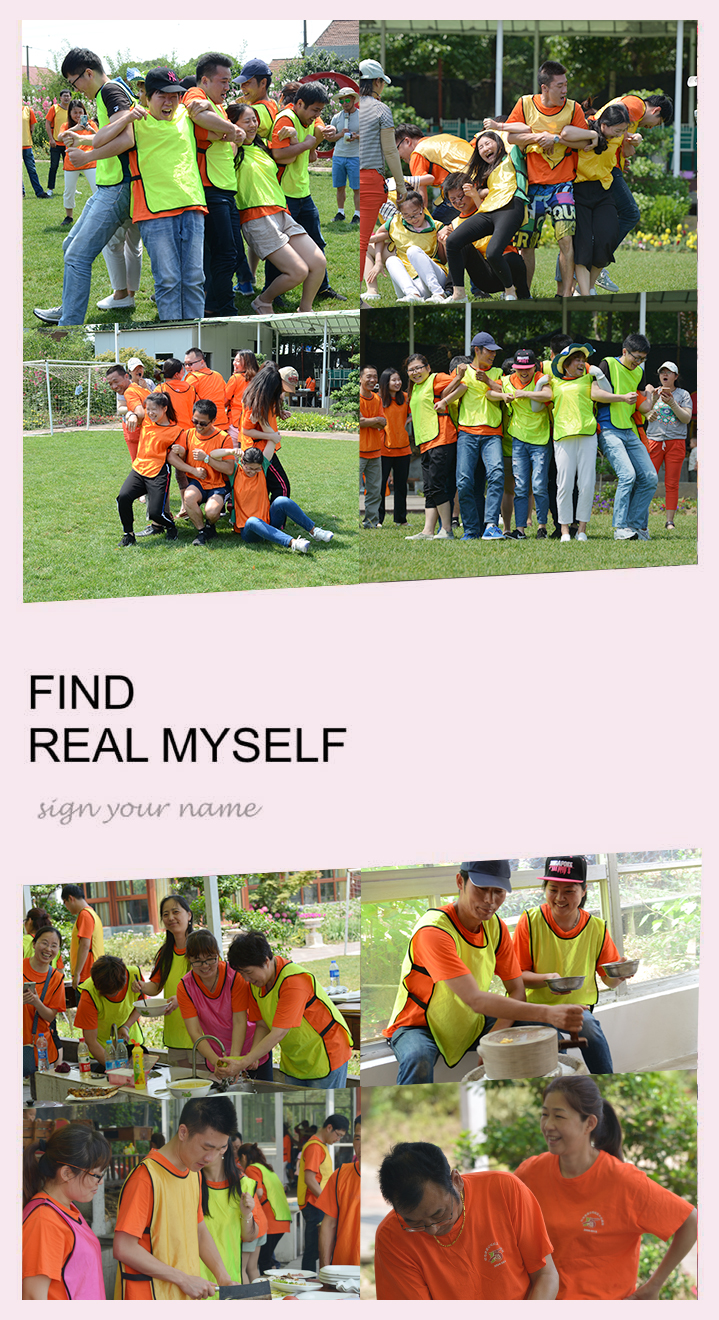 大家开始报数分组,然后每队穿上自己一队的队服,开始了个游戏5毛一元,(男生代表一元,女生代表5毛)当然我们的小朋友们在这个环节可抢手了,教练一声令下,大家开始围着圈圈随着音乐小跑起来,大家都竖起自己的耳朵认真听着教练嘴巴会喊出什么数字来然后进行组合,如果有单出来的,那么要惩罚了,所以大家都特别用心的听着,不过还是会有人收到惩罚,比如唱歌做俯卧撑,但是大家都很开心,玩的都忘乎自我了,接下来的游戏是看大家是协助能力,每组的人都背对着背,胳膊互相挎着彼此的胳膊,然后坐在地下,看着哪组的人可以先站起来,其实这个游戏的关键是看大家的互相配合,如果有一个人没有使好力气会导致这一组的人都站不起来,所以大家在准备的时候都互相揣摩怎么样使劲,看着大家的努力及认真的样子,知道大家肯定都没有问题都可以站起来的,虽然这两个活动我都没有参加,但是在一边看着的我心里特别激动紧张,看着大家玩的那么开心情不自禁的拿着手机捕捉大家的精彩瞬间.紧接着我们去了另一个地方钓龙虾,大家纷纷拿着小鱼杆栓上诱饵开始钓龙虾,次参加这样的集体钓龙虾还是蛮开心的,虽然没有钓到,但是看见别的同事有收获一样的很开心!