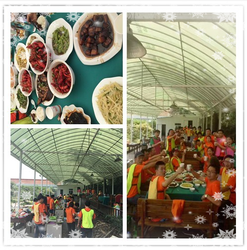 这边我们客服的莲莲和宋经理给大家上菜了,令我们垂涎三尺的美食尽在眼前,瞧,电销部个准备绪要开动啦: