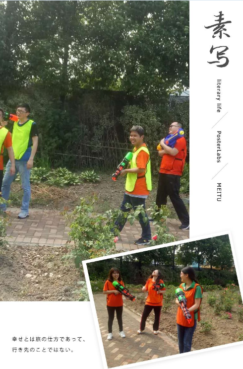 吃饱喝足之后,还有更好玩的在等待着大家哦。尹总作为我们的首席指挥官,带领大伙一起在花海中开始水枪大战,在花园中展开了一场脑力与体力并存的精彩角逐;有我们的到来令整个山庄沸腾起来。有人认真享受活动的乐趣,也有人专门为她们拍下精彩瞬间,例如我、海燕和王经理是专门的摄影师,为大家留下美好回忆。