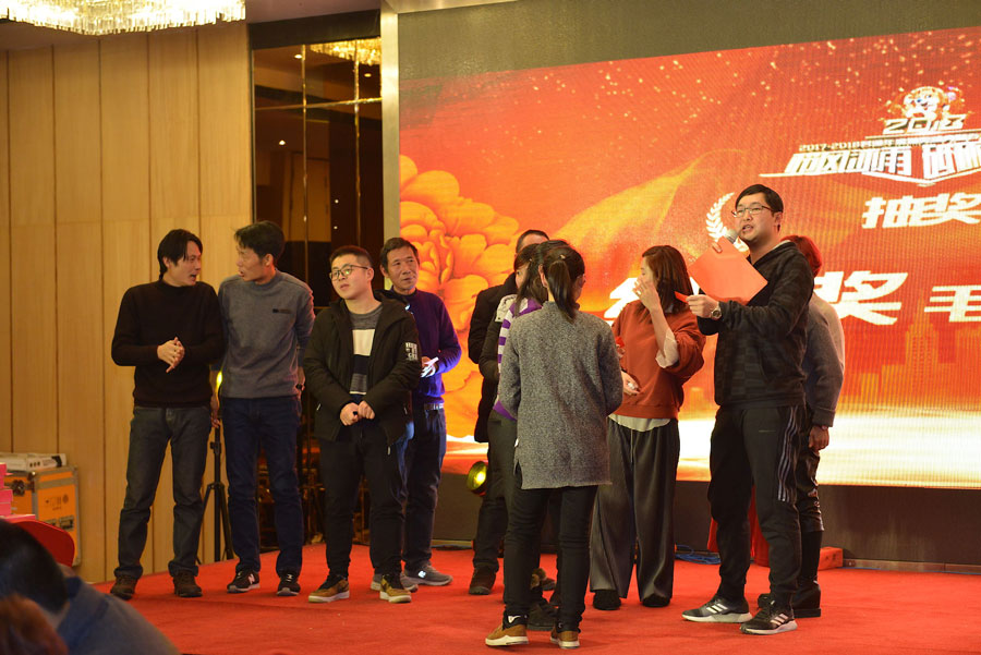 年会上,大家聚在一起,兴奋地回顾着一年的努力,讨论着未来的发展规划,在酒桌上开着各自的玩笑,拿着酒杯去其他桌车轮战。随着压轴好戏抽奖活动的登场更是将年会气氛推向了高潮,而管理层的抽奖则引爆了人员的热情,而这热情一直持续很久很久。