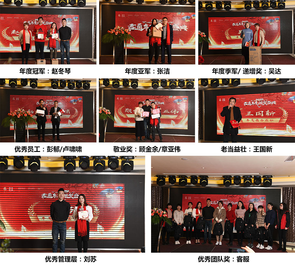 所取得的辉煌成就,离不开每位君通人的努力与付出,公司精心为大家准备了众多大奖奖励给在2018年勤勤恳恳、任劳任怨、出类拔萃、兢兢业业的团队与员工!分别颁发了年度冠亚季军、递增奖、员工奖敬业奖、老当益壮、管理层及团队奖,同时颁发了丰富奖品。