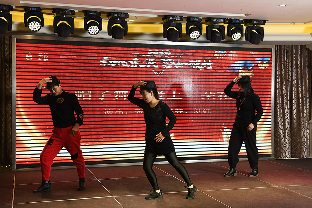 优美的笛声刚落,市场部老前辈张经理、刘红、秦姐带来一曲动感十足的帽子舞《爱上一朵花》: