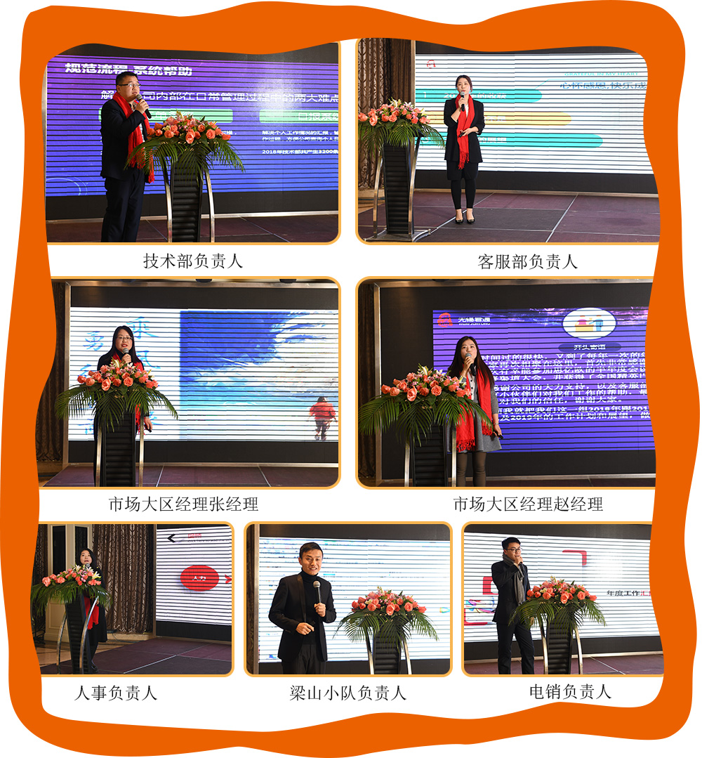 紧接着是我们的行政人事部负责人何经理上台总结发言,行政是公司的枢纽,为公司各个部门输送人才、提供后勤保障等,2019年人事是公司发展重要的一环,如何规避管理方面存在的漏洞,如何每个部门工作正常开展?是2019年工作的重中之重!