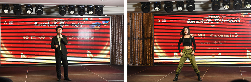 一直是小品担当的技术部的同事们全员出动先后给大家送上小品《同学聚会》、《开年会》、《B超风云》、《安检》,别看他们工作中一丝不苟、兢兢业业的模样,幽默诙谐起来的表演令人捧腹不已。