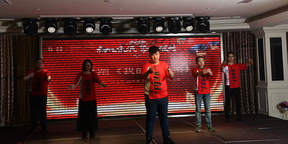 是由我们的三大团队为我们带来的团队节目:梁山小分队的手语舞《我的好兄弟》歌声激情澎湃,手指舞情谊深厚,365个日夜,大家一起经历过风雨洗礼、跌宕起伏、浴血奋战、荣辱与共的情谊体现得淋漓尽致: