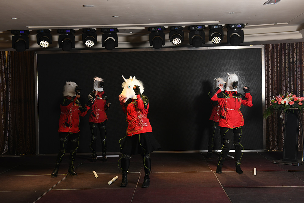 压轴的是全体行政部为大家的舞蹈《阳光彩虹小白马》,将本次迎新晚会推向高潮,创意爆表!舞台科技灯光效果让现场掌声不断,欢呼声不停,大家为节目的创意点赞。