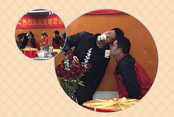 要求:人员选6名一组,男女交替配合。共选十二名员工,分二组同时进行比赛。另有二名人员辅助组人员倒水至衔至的纸杯内,再一个个传递至下一个人的纸杯内,一人的纸杯内的水倒入一个小缸内,在限定时间内,看谁的缸内的水多,谁就获胜。