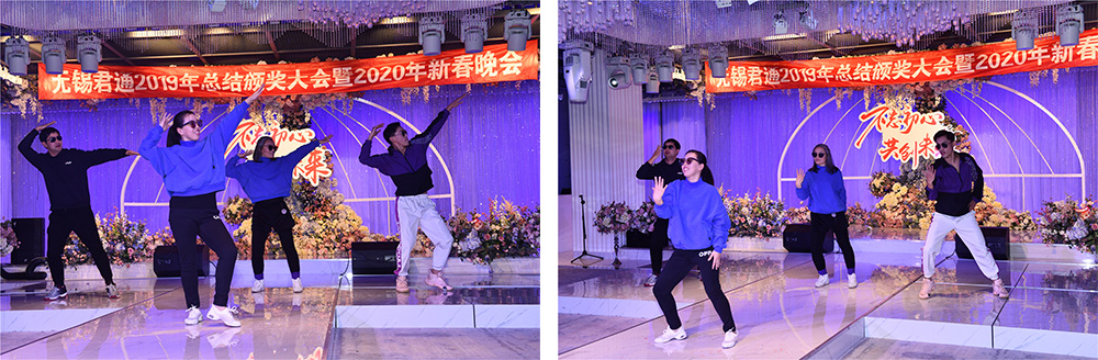 除了这些好看好听的节目外,公司还准备丰盛的晚宴,晚宴的高潮随着抽奖一波又一波的此起彼伏,激情涨到点,君通歌神们一展风采,唱出了我们共同美好的明天!