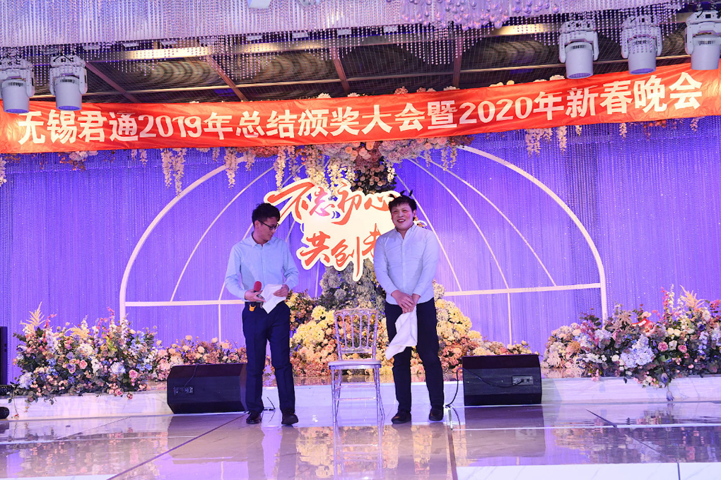 颁奖典礼结束后是大家期待已久的君通春晚,随着如雷惯耳的掌声,4位主持人闪亮登场!每年的节目都让大家捧腹大笑,不知道今年君通的家人们又给大家准备了什么精彩而又难忘的节目呢?