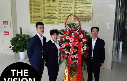一早鞭炮花篮以及我们庞大的君通队伍在办公楼下形成了一道亮丽的…