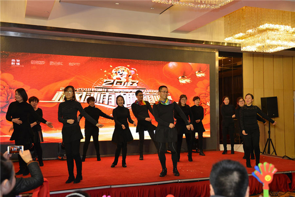 由康总带领的客服和行政部带来的重量级阵容舞蹈——《嗨翻2018》一度点燃了的气氛,赢得了在场观众雷鸣般的掌声。姑娘们在动感十足的韵律中登上舞台,整齐划一、充满活力的舞姿,康总富有感染力的表现,成为晚会的亮点之一。