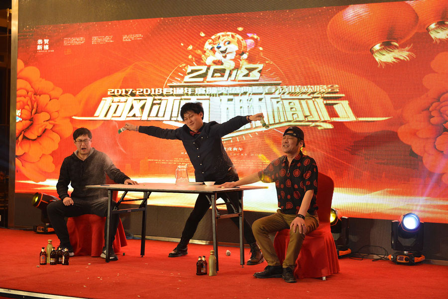 尤其值得一提的是平均年龄较长的市场部,他们带来的舞蹈《C哩C哩》动作整齐有力,充满激情,向大家展示了矫健的身手,乔总邓总的花式加入更是锦上添花。同时他们和技术部的跨部门合作小品《我们都是木头人》爆笑登场,将晚会气氛再次推向高潮,赢得大家的阵阵掌声和欢呼,为晚会填上了绝妙难忘的一笔。一张桌来四张口,却好似有着魔力,不断挠着观众笑点,台下笑声不断。