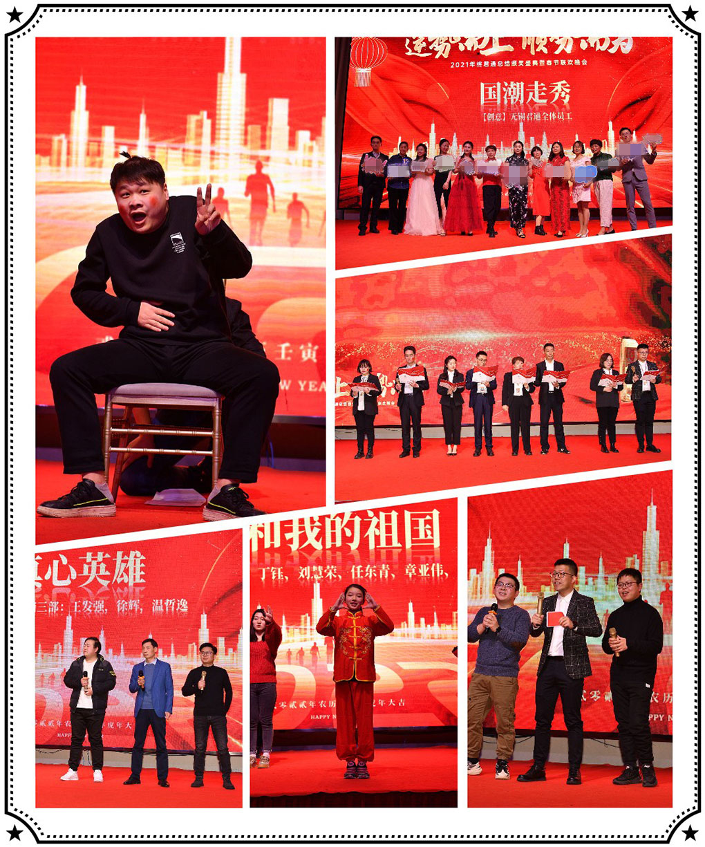 接下来就是大家最最最最期待的君通的春晚了,在忙碌的工作之余,大家都抽时间排练了精彩节目,有唱歌跳舞,有小品,有双簧等常规节目,还有很多创意型节目,乐器表演等。君通人才艺兼备,为大家奉献了一场盛大的饕餮盛宴!